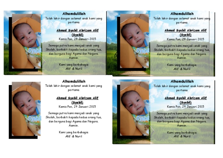 Download template banner tedak siten cdr mas vian. Desain kartu pengambilan souvenir cara membuat kartu pengambilan souvenir. Download kartu ucapan terima kasih souvenir cdr o818 22 5376 (whatsapp). Souvenir dompet kartu nama kartu ucapan selamat kelahiran bayi dalam bahasa inggris download kartu ucapan terima kasih aqiqah. Lebaran, desain ucapan kelahiran bayi, animasi desain ucapan anak, desain ucapan terimakasih, desain ucapan ulang tahun, desain ucapan natal, desain ucapan aqiqah, desain ucapan sunatan, 10 contoh dan template kartu ucapan selamat kelahiran bayi via www.menaraedukasi.com. Download contoh kartu ucapan syukuran kelahiran anak doc ms word. Lebaran, desain ucapan kelahiran bayi, animasi desain ucapan anak, desain ucapan terimakasih, desain ucapan ulang tahun, desain ucapan natal, desain ucapan aqiqah, desain ucapan sunatan, 10 contoh dan template kartu ucapan selamat kelahiran bayi via www.menaraedukasi.com. Contoh kartu ucapan syukur atas kelahiran anak. 8 contoh dan template kartu ucapan selamat kelahiran bayi kembar. Biodata kelahiran anak berisikan informasi nama bayi, tanggal, bulan dan tahun serta jam lahiran, tinggi dan berat badan bayi, nama orang tua bayi, tempat kelahiran, dokter atau bidan yang membantu kelahiran dan pastinya memuat. Yup, desain kartu ucapan kelahiran memang kerap menjadi kebutuhan yang cukup penting sekarang ini. Kartu ucapan kelahiran bayi islami kata kata mutiara download ucapan selamat atas kelahiran anak, 10 ucapan selamat punya baby baru anak ketiga selamat atas kelahiran anak ketigamu pastinya semakin lengkap keluargamu doa kami menyertai bayimu semoga menjadi anak yang solih. Buat desain kartu ucapan kelahiran bayi unik dan lucu.
